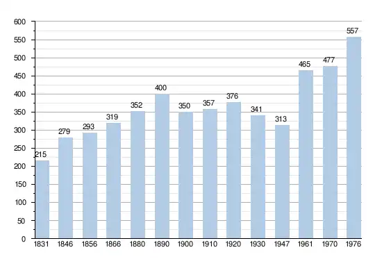 - Sources : INS, Rem. : 1831 jusqu'en 1970 = recensements, 1976 = nombre d'habitants au 31 décembre.