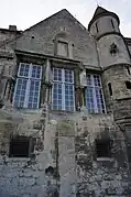 Une partie est décorée de trois tourelles et, entre elles, un groupe de trois fenêtres et un autre de quatre de style gothique. Puis, pour la partie est, trois fenêtres Renaissance. L'ensemble de cette façade est rehaussée de sculptures dont une particulièrement remarquable.