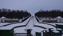 La grande cascade est copiée sur celle construite pour Louis XIV dans le parc de son château de Marly. La grande cascade descend sept vastes marches. Elle est ornée de deux cents sculptures et de près de soixante jets d'eau.