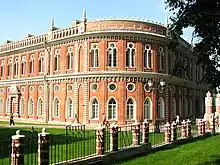 Le palais de Tsaritsyno est un palais situé au sud de Moscou dans le district de Tsaritsyno, commandé par Catherine II à l'architecte Vassili Bajenov en 1776. Resté inachevé, le palais est restauré à partir de 1984 et finalement terminé selon les plans initiaux. Il est inauguré officiellement en 2007. Il se trouve au milieu d'un grand parc de plus de 100 ha et abrite plusieurs musées et bâtiments.