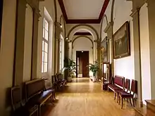 En arrivant de la salle des pas perdus, une galerie longe la salle des séances solennelles pour rallier le salon Napoléon. Cette galerie comprend plusieurs tableaux, dont le plus important est situé à son extrémité, peint par Stanislas Loyer en 1863 et représentant saint François de Sales convertissant deux hérétiques[18].