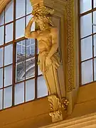 Au dernier niveau alternent des cariatides et des atlantes de Guillaume Bonnet sculptées dans du bois de tilleul.