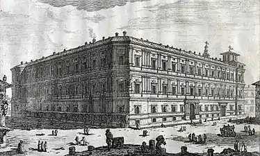 - (it) Cet article est partiellement ou en totalité issu de l’article de Wikipédia en italien intitulé « Palazzo della Cancelleria » (voir la liste des auteurs).