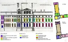 | Élévation et plans du Louvre Renaissance. Répartition des appartements. |