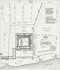 La première forteresse du Louvre, sous Philippe Auguste, a été bâtie sur un lieu-dit nommé en bas-latin Lupara[6], terme désignant selon lui une louveterie, lieu abritant les équipages destinés à chasser le loup[7] (en latin lupus signifie « loup »).