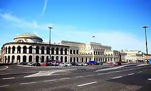 Le palais a une structure unique à Varsovie et se caractérise par de grandes terrasses. Corazzi l'a conçue sur le modèle des villas de la Renaissance italienne. Il se compose d'un bâtiment central rectangulaire de trois étages à partir duquel une puissante projection centrale en gradins fait saillie jusqu'à la Place Bankowy. Une colonnade continue relie les façades des parties du bâtiment atteignant la place et ferme ainsi la cour. L'ensemble se caractérise par des proportions parfaites.