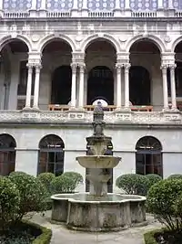 Au centre de la cour se trouve une fontaine, autour de laquelle est disposé un jardin. La fontaine provient de l'ancien Couvent de Saint-Domingue de la Guardia de Jaén, elle a été donnée en 1955 par ses propriétaires à l'Institut d'Études Giennenses pour qu'elle occupe la cour du Musée Provincial, jusqu'à ce qu'elle soit installée dans son emplacement actuel en 1961 ; elle est datée de 1577.