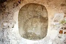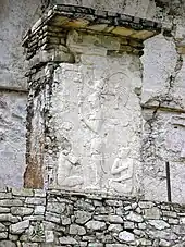 Le Temple du Beau-Relief se situe à 200 mètres au sud du groupe principal. Il doit son nom au bas-relief finement ciselé qui représente un roi assis sur un trône en forme de jaguar bicéphale.