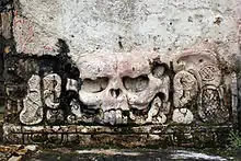 Le Temple XII est le premier temple à l'entrée du site, il est appelé aussi « Temple du Crâne » à cause du bas relief en stuc qui orne le haut de son escalier d'accès. Il est situé sur la même plateforme que le Temple XIII et le Temple des Inscriptions.