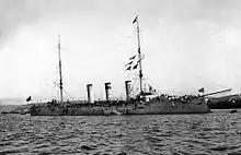 | Armement | 2 × 2 × 152 mm, 8 × 1 × 152 mm, 12 × 280 mm, 8 × 47 mm, 2 × 37 mm, 2 tubes lance-torpilles d'un calibre de 380 mm |