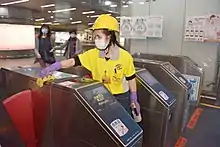 L'export des masques chirurgicaux est suspendu le afin d'assurer les stocks nationaux[4],[95],[14] ; en interne, la vente des masques fait par la suite l'objet d'un rationnement, autorisée uniquement dans les pharmacies agréées par le CECC[96] et sur présentation de sa carte d'assurance[96],[14] ou de son certificat de résidence[97]. L'interdiction d'export, initialement en vigueur jusqu'au , est reconduite jusqu'à la fin du mois de [98].