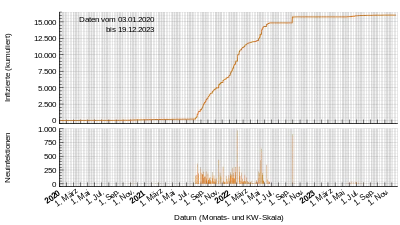 Le , le premier cas de Covid-19 du pays a été annoncé, un homme de 54 ans qui est revenu du Royaume-Uni[8].