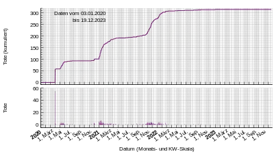 En décembre 398 nouveaux cas portent le nombre de cas à 7 405 dont 275 décès[26].