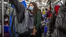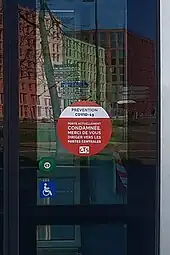 Panneau apposé à l'entrée d'une station du métro parisien, indiquant l'obligation du port du masque, le , juste avant le début du déconfinement.
