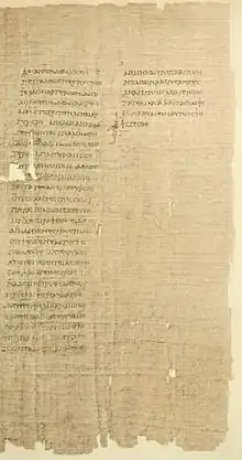 Ces abréviations désignent la plupart du temps le centre universitaire (ou le musée) où les textes sont conservés et le tome de l'édition où le chercheur peut lire le texte originel (par exemple, le B.G.U. V 1210, connu aussi sous le nom savant de Gnômôn de l'Idiologue, indique que le texte est conservé dans la collection de la Berliner Greischische Urkunden, le recueil des papyrus grecs de Berlin, qu'il est publié dans le tome cinq des éditions de cette collection, sous le numéro 1210)[52]. La notation abrégée peut désigner aussi le lieu d'extraction archéologique du texte : P. Oxy. XI 1381, relatif à un miracle attribué au dieu égyptien Imhotep[53], est un papyrus d'Oxyrhynque : il provient de la ville ainsi dénommée dans l'Antiquité et aujourd'hui El Behneseh, en Moyenn Égypte ; la collection est conservée actuellement à Oxford (Royaume-Uni). Ce texte est publié dans le tome onzième réservé à cette collection sous le numéro 1381. Parfois, le système d'abréviation concerne les deux critères à la fois (lieux d'extraction et de conservation) : P Tebt. Mich. désigne un papyrus provenant de l'antique Tebtynis (actuelle Oumm-el-Baragat, dans l'oasis du Fayoum) et conservé dans le département à l'Université du Michigan.