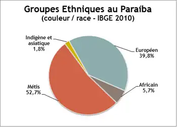 En ce qui concerne la démographie, le recensement de l'IBGE 2010 a montré une population totale de 3 766 528 personnes dans l’état du Paraíba et une densité de 66,7 hab./km2[8].