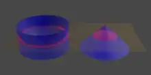 Lorsque le plan de coup arrive au sommet des volumes (), est réduit à un cercle, tandis que est réduit à un point (le sommet du cône). On est alors face à une situation paradoxale : un cercle serait égal à un seul point.