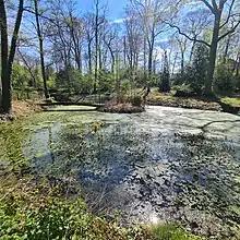 Ce parc d'une superficie d'environ 1,60 hectare est assez boisé. Il possède quatre pièces d'eau (deux grandes comprenant chacune une petite île et deux petites) reliées entre elles.