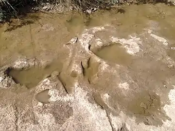 - Empreintes fossilisées de dinosaures dans le lit de rivière