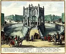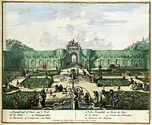 Construit vers 1660 sur les plans de Charles d’Arenberg, le portique de style baroque qui évoque un arc de triomphe se trouvait initialement au lieu-dit la Patte d’Oie et ouvrait la vue sur le Pavillon des Sept Étoiles[4].