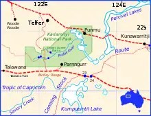 - (en) Cet article est partiellement ou en totalité issu de l’article de Wikipédia en anglais intitulé « Karlamilyi National Park » (voir la liste des auteurs).