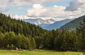 Ces formations d'arbres remontent les pentes en se clairsemant vers la limite supérieure pour céder lentement la place au mélèze (Larix decidua) et au pin cembro (Pinus cembra), principalement en Val de Peio.
