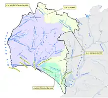 L'hydrographie actuelle des marais est due à de multiples facteurs : tremblement de terre de Lisbonne de 1755, accumulations et retraits successifs de sédiments du Guadiana ainsi que du complexe fluvial Tinto-Odiel à la suite de la construction de la digue Juan Carlos I au port de Huelva et d'autres digues qui ont fait varier les flux de sédiments[2]. La rivière Carreras influence aussi beaucoup la zone.