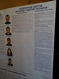 Le parti ukrainien de l'Internet se présente comme le premier parti Internet du monde, bien que ce titre revienne plutôt au Parti pirate de Suède. Il prend pour slogan « un gouvernement électronique contre la bureaucratie »[1].