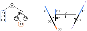 | vii. | Nous traitons les segments situés devant B1. Il n'y a qu'un seul segment, D1, nous créons donc un nœud enfant de B1 pour l'y mettre. | ![]() |