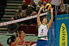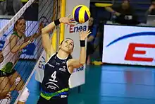 Selon le système tactique mis en place, il y a un passeur (système 5-1) ou deux passeurs (système 4-2). Dans un système 5-1 (5 attaquants et 1 passeur), le passeur se place après le service généralement :
