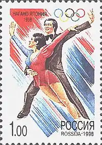 Timbre russe émis à l'occasion des XVIIIe Jeux Olympiques d'hiver.