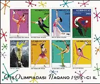 Timbres azéris émis à l'occasion des XVIIIe Jeux Olympiques d'hiver.