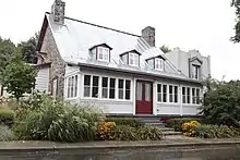 Construite en pierre, elle se caractérise surtout par son toit à pignon à pente recourbée, de manière que la neige ne tombe pas directement sur le sol, mais soit plutôt ralentie et projetée un peu plus loin. À Montréal, si elle est attenante à d'autres maisons, elle possède des murs coupe-feu, surélevés par rapport à la toiture de manière à empêcher la propagation du feu.
