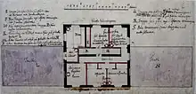 Au rez-de-chaussée, on trouve sept pièces, dont trois dans le corps de logis. L'entrée actuelle, située côté nord, n'était probablement pas utilisée par le roi et ses hôtes[3]. À droite et à gauche du portail, deux médaillons à motif d'anges ornent la façade.