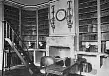 Le bâtiment abrite aujourd'hui une grande partie de la bibliothèque du roi Gustave III. Il a fallu un long travail d'enquête pour reconstituer cette collection. De nombreux ouvrages avaient en effet suivi Gustave IV Adolphe lors de sa fuite après le coup d'état de 1809. Les étagères et la cheminée avaient été démontées, et un mur avait été ajouté pour créer deux pièces plus petites. La cheminée est recréée en 1923, et la même année plus de la moitié des livres sont retrouvés lors d'une vente aux enchères en Allemagne. C'est l'administrateur des chasses royales, Helge Axelsson Johnsson, qui s'en porte acquéreur, avant de les envoyer à Gustaf V. Le reste des ouvrages provient de la bibliothèque royale, ainsi que du palais royal, où on a même retrouvé les étagères et des moulures. Du reste du mobilier, il ne subsiste par contre plus que les escabeaux[10].