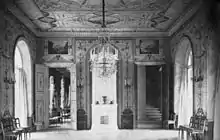 La salle à manger du roi est située dans l'aile nord. Elle a été décorée par Masreliez à la manière d'un temple antique, avec des peintures imitant des pièces d'architecture en pierre. Elles représentent des colonnes corinthiennes en marbre qui supportent les moulures du plafond. Sur le plafond sont peints des reliefs à la gloire du dieu du vin, Bacchus. Les hautes double-portes sont quant à elles peintes à la manière d'un portail de cuivre. La salle à manger a subi d'importantes transformations pendant les années 1840 sous le règne du roi Oscar Ier. Une rénovation dans les années 1930 lui a toutefois rendu son aspect d'origine[7]. Dans l'aile sud, la plus grande pièce est la salle des miroirs. Avec ses larges fenêtres sur trois côtés, elle offre une vue imprenable sur le parc et sur le lac Brunnsviken (de). Les moulages et les décorations y sont réalisés par Pehr Ljung en . Six mois plus tard, on installe les larges miroirs, qui ont été achetés en France à prix d'or[8].
