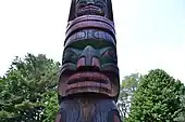 Les artistes kwakwaka’wakw Tony et Henry Hunt (en) sculptent un mât totémique pour l’extérieur du pavillon. Bien que le pavillon est détruit, le mât est toujours sur l’île Notre-Dame de Montréal[4].