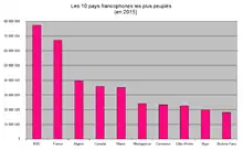 | Pays | Capitale | Continent | Population (est. 2017)[9] | Francophones (est. 2016)[10] | % [10] | |