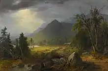 Historiquement, le paysage est d'abord une notion artistique, au sens de décor disposant d'une valeur esthétique[31]. Le regard paysager s'est formé dans le monde occidental au contact de l'art pictural et de ses évolutions au début de l'époque moderne[32], notamment à la Renaissance. La naissance du paysage est liée ainsi à une « médiation par l'art », à un processus d'« artialisation », notion empruntée à Montaigne par Alain Roger[33], qui permet de passer du pays au paysage. L'intervention de l'artiste[34] et de son regard entraîne « une dualité pays-paysage qui répond à une dualité de type de dualité nudité-nu, la nature étant le «corps dévêtu qui ne devient esthétique que grâce à l'intervention de l'art »[31] : c'est ce processus qu'Alain Roger nomme « artialisation ».