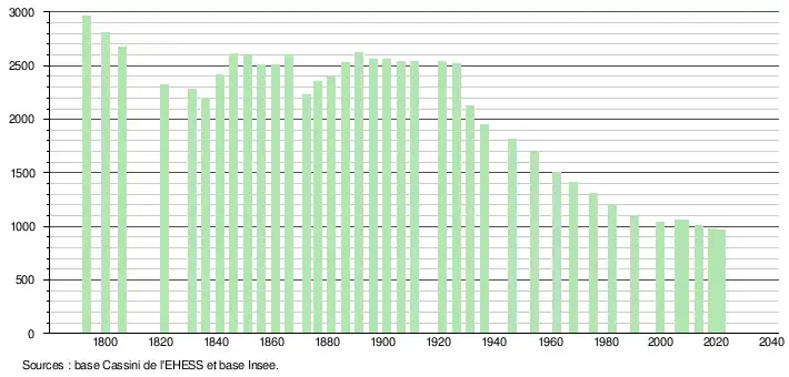 - Population municipale légale en vigueur au 1er janvier 2024, millésimée 2021, définie dans les limites territoriales en vigueur au 1er janvier 2023, date de référence statistique : 1er janvier 2021.