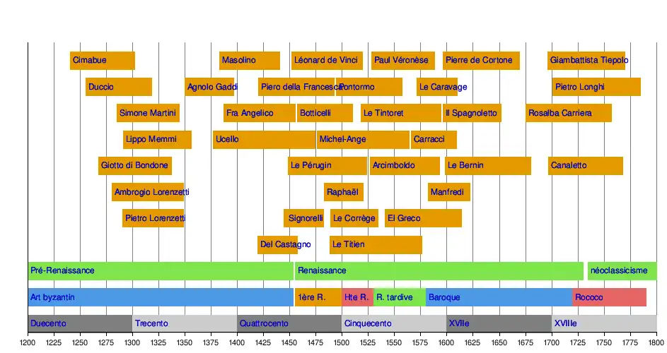 Frise chronologique des peintres italiens