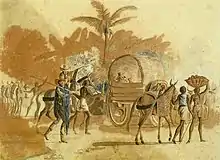Bien qu'il ne soit apparu comme un courant dominant dans la peinture qu'entre 1850 et 1860, le romantisme brésilien (pt) a pris racine dans les premières décennies du XIXe siècle, avec l'émergence de plusieurs naturalistes étrangers venus à la recherche de terres encore à explorer. Outre la motivation purement scientifique de ces expéditions, il y avait parmi eux plusieurs peintres et illustrateurs animés par la tendance romantique à valoriser la nature et la fascination pour l'exotisme. Thomas Ender était l'un d'entre eux, participant à la mission autrichienne (pt), et s'est concentré sur les « rencontres ethniques » qui ont eu lieu dans le paysage urbain et les environs de Rio de Janeiro[9]. Un autre, membre de l'expédition Langsdorff (pt), était Johann Moritz Rugendas, qui, selon Pablo Diener, était « possédé de l'émotion que le romantisme allemand définit comme Fernweh, c'est-à-dire la nostalgie du lointain[alpha 2] ». Dans ses aquarelles, reproduites plus tard sous forme d'estampes, il avait tendance à représenter l'Indien et le noir d'une manière idéalisée, presque héroïque, mais il n'était pas aveugle à leurs souffrances. Il n'a pas non plus ignoré la majesté du paysage brésilien, refusant de répondre aux exigences de précision scientifique de son entrepreneur et adoptant une attitude créative indépendante, essentielle pour les romantiques de l'ancien monde[10],[9].
