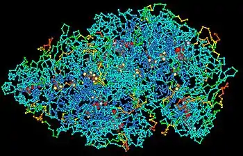 Des polymères plus complexes, comme des protéines avec des radicaux chimiques différents attachées à leur chaîne principale en interagissant entre elles, s'auto-assemblent dans des structures bien définies. Mais des segments de protéines, et de polypeptides dépourvus de structures secondaires, sont souvent considérés comme présentant une conformation de pelote aléatoire dans laquelle les seules relations avérées sont les liaisons peptidiques entre résidus acido-aminés. Ce n'est pas en réalité le cas, l'ensemble est pondéré énergétiquement en raison des interactions entre chaînes d'acides aminés, avec une plus grande fréquence de présence des conformations de plus basses énergies. De plus, même les séquences arbitraires d'acides aminés ont tendance à exhiber des liaisons hydrogène et une structure secondaire. Pour cette raison, l'expression de pelote statistique est parfois préférée. L'entropie conformationnelle associée avec l'état de pelote aléatoire contribue significativement à sa stabilisation énergétique et compte pour beaucoup dans la barrière d'énergie du repliement des protéines.