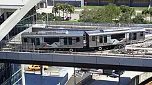 Trois firmes ont soumis des propositions et la technologie UM-III de TGI (acquise par Bombardier) a été sélectionnée. Cinq véhicules UM-III fonctionnent aux heures de pointe le long d'une poutre montée en surface dans les zones de guidage[10]. Un sixième véhicule est en réserve. Les automatismes du système sont le Seltrac S40 de la société Alcatel. Chaque véhicule mesure 7,9 m de long. La capacité théorique de chaque véhicule est de 17 passagers (8 assis et 9 debout), mais moins lorsque les passagers viennent avec des bagages volumineux. Les véhicules Bombardier UM-III sont également utilisés sur le Jacksonville Skyway.