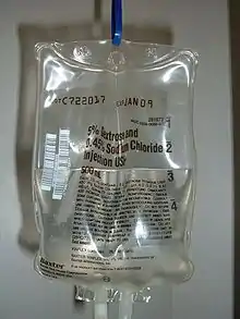 Le système de la pochette de liquide d'infusion a été mis au point et breveté par le médecin américain Donald E. Baxter, à son retour de Chine en 1931. Ce système est parfois désigné « baxter » en référence à son créateur.