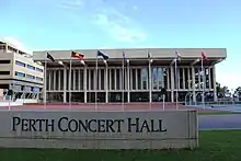 La ville de Perth abrite une salle de concert dans son CBD (Le Perth Concert Hall, ci-contre), située non loin du palais du gouvernement de l'État ainsi que de la mairie.