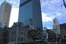 La tour 'amcom' (gauche) dans un CBD à l'architecture diversifiée.