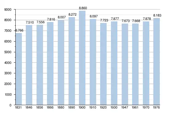 - Source: DGS , de 1831 à 1981=recensements population; à partir de 1990 = nombre d'habitants chaque 1 janvier