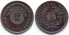 En 1900, des pièces en cupronickel de 5, 10 et 20 centavos furent introduites, suivi en 1925, du fait de la dévaluation, par des pièces en cupronickel de 50 centavos, et de 1 et 2 pesos. En 1938, l'aluminium remplace le cupronickel dans ces trois dernières dénominations, le cupronickel servit pour les pièces de 5 et 10 pesos l'année suivante.