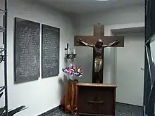 Plaque commémorative à l'intérieur de la chapelle catholique.